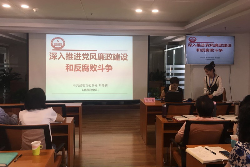 4月23日,全國(guó)、全省、全市廉政工作電視電話(huà)會(huì)議召開(kāi),會(huì)議對(duì)黨風(fēng)廉政建設(shè)和反腐敗工作進(jìn)行了強(qiáng)調(diào)和部署。為貫徹落實(shí)有關(guān)會(huì)議精神,加強(qiáng)集團(tuán)公司黨風(fēng)廉政建設(shè),切實(shí)增強(qiáng)黨員干部廉潔從業(yè)的責(zé)任意識(shí)和擔(dān)當(dāng)意識(shí),4月25日下午,投資集團(tuán)黨委舉辦了黨風(fēng)廉政建設(shè)暨反腐敗斗爭(zhēng)專(zhuān)題開(kāi)展教育培訓(xùn),中共昆明市黨委黨校胡燦莉同志應(yīng)邀授課,集團(tuán)本部全體干部員工、各子公司經(jīng)營(yíng)班子以及各基層黨組織書(shū)記、副書(shū)記、黨員代表60余人參加了培訓(xùn)。
